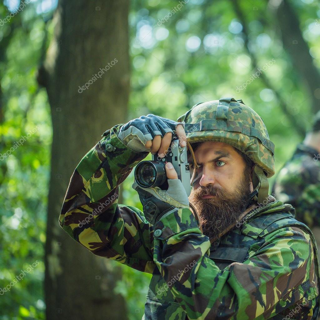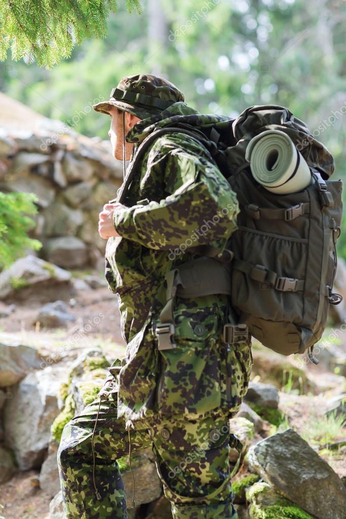 Mit einem Soldaten im Wald