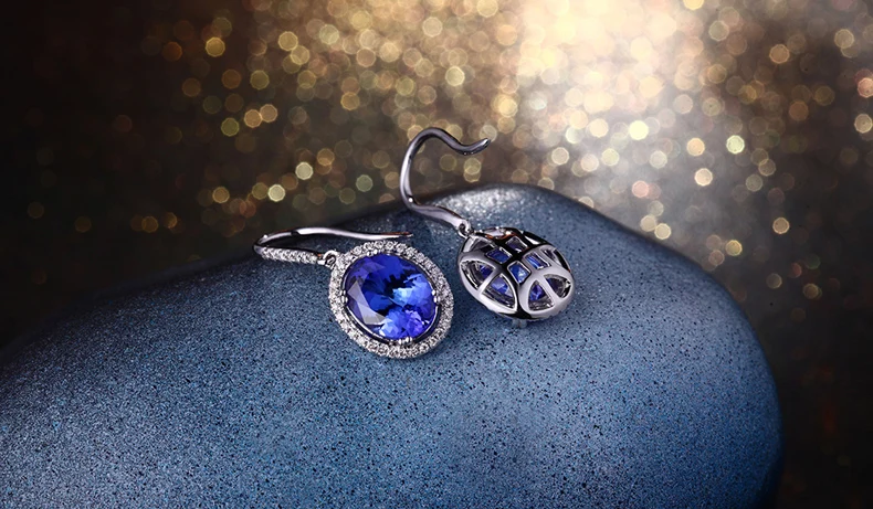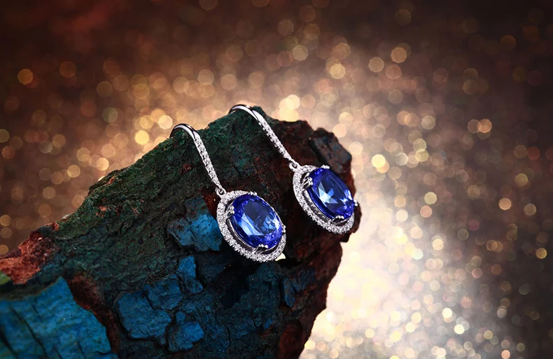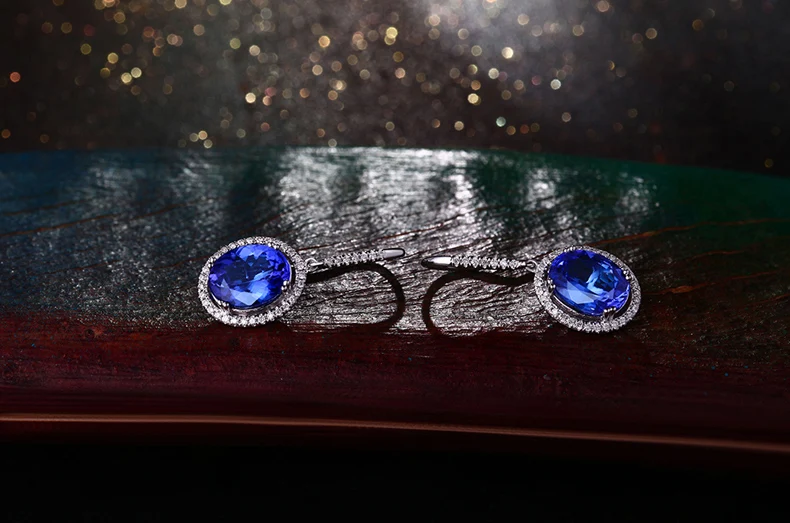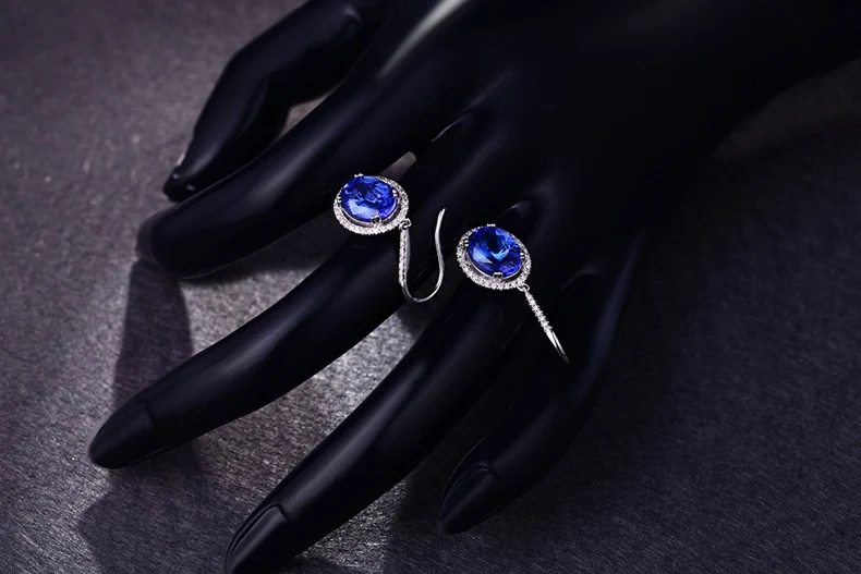 Boucles Doreilles Avec Pendentifs Zircon C Argent Sterling 925 Noircissement Oxydation Kanit Bleu Argent 11 16