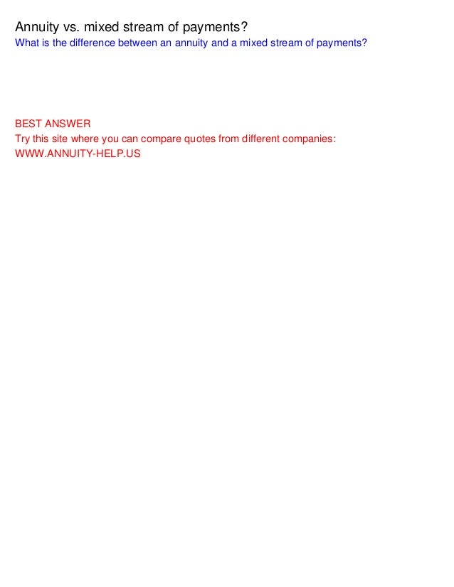 mixed stream: A series of cash flows exhibiting any pattern other than that of an annuity . A stream of cash flows of different amounts . Click to see full answer . Likewise, what is a mixed stream of cash flows?