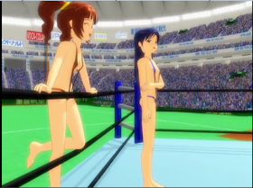Someone in Japan (ζ Όι η·ε₯³ if you read Kanji) uses MikuMikuDance (MMD) software to animate mixed wrestling instead of dancing . They are mismatches to say the least . I for one like them, and thank the animator for sharing . Here is the Youtube channel with fifteen videos: