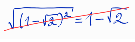 Ошибка во втором задании, вероятно, отсутствие представления, что корень из квадрата – это модуль. Цепочка из нескольких специально подобранных заданий позволит легко устранить этот пробел.