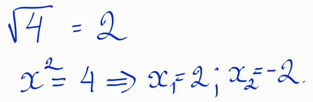 Пришлось объяснить, что не только он – мой друг, но и громадное количество школьников, делает подобную типичную ошибку, путая корни (решения) квадратного уравнения и значение квадратного корня (Рис.1):