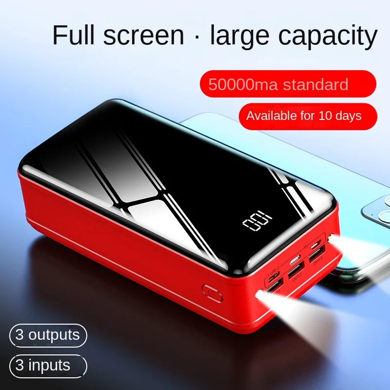 Mobile Power 50000 mAh Portable Charger Fast Charging Battery Pack 3 Input & 3 Output Mirror Digital Display Charging Power Bank - Купить с бесплатной доставкой