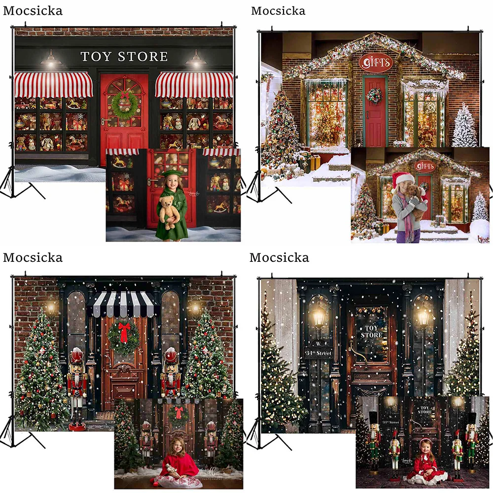 "Mocsicka Christmas Toy Store Snow Photography Background Child Birthday Backdrop for Photo Studio Xmas Tree Vintage Door Decor" * Buy Now Just For 27$