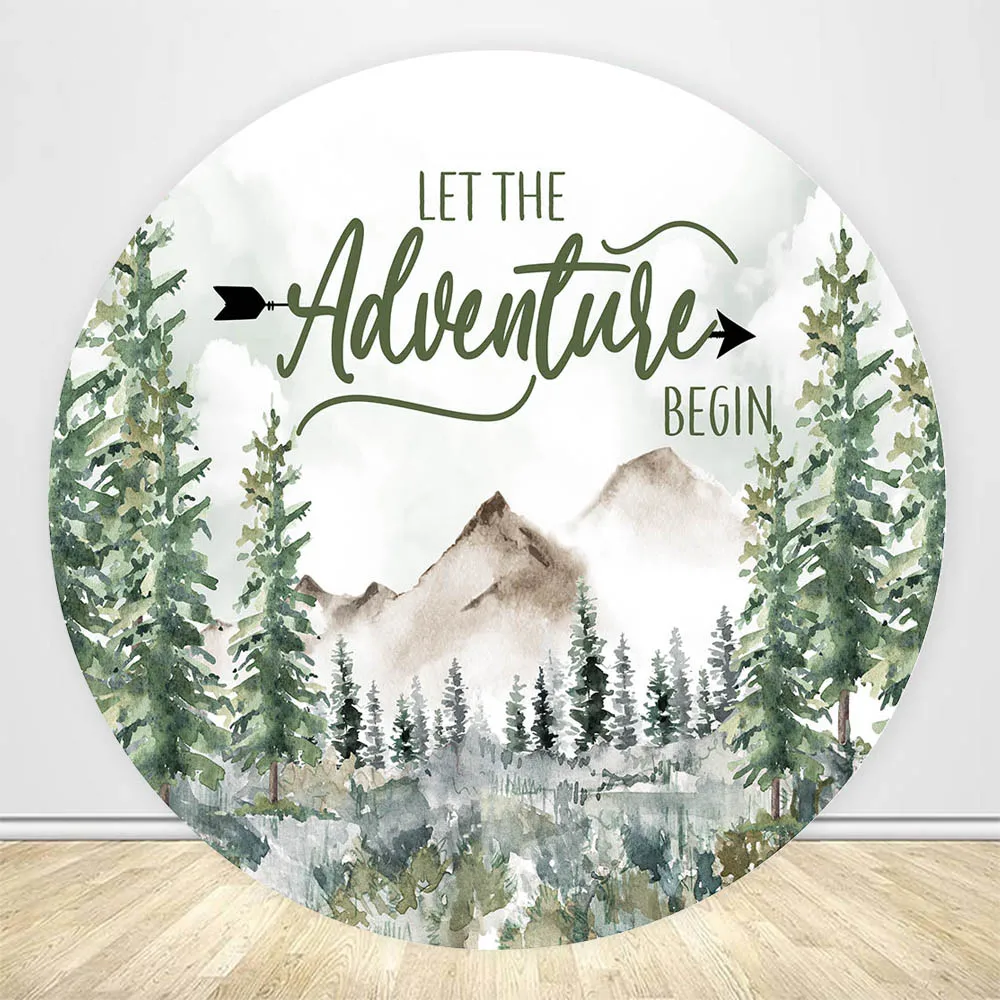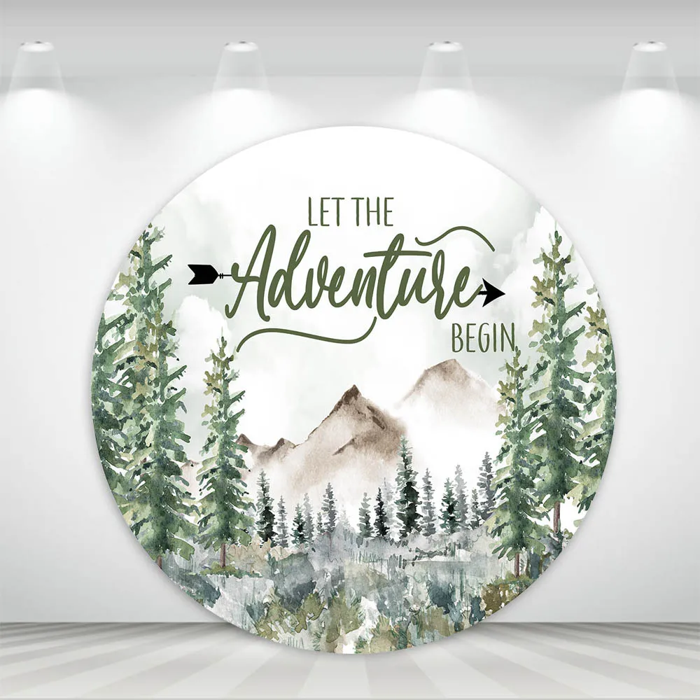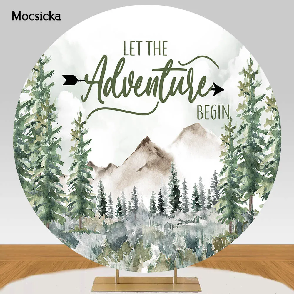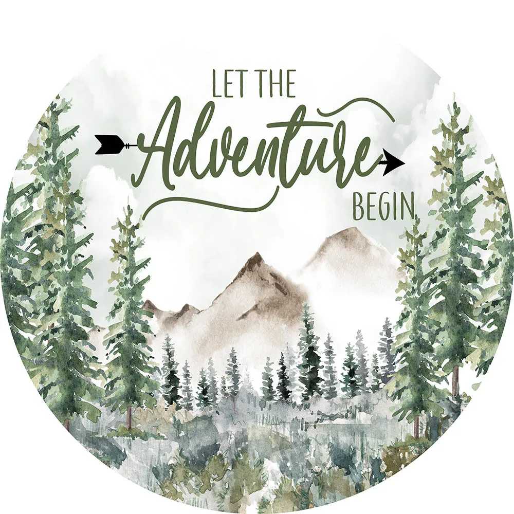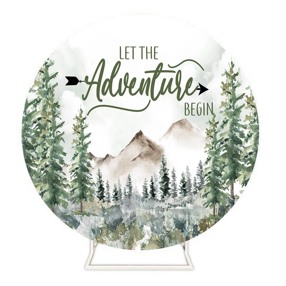 "Mocsicka Let The Adventure Begin Round Backdrop Cover Elastic Vinyl Jungle Wild Forest Baby Shower Circle Photo Background Decor" * Buy Now Just For 23$