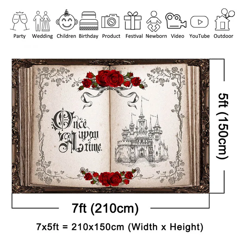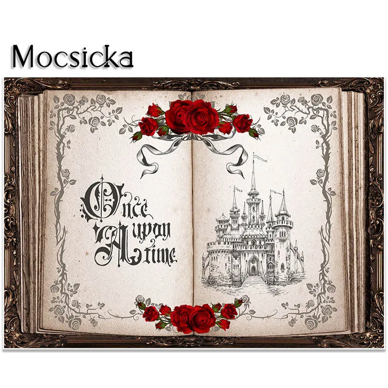 "Mocsicka Magic Book Backdrop Once Upon A Time Rose Castle Background Adults Portrait Photo Studio Props Party Decorations Banner" * Buy Now Just For 10$