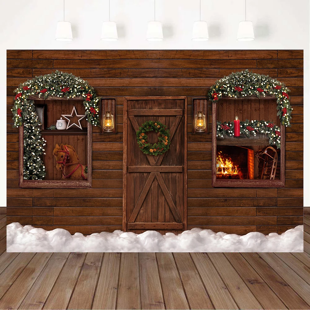"Mocsicka Wood Photography Background for Photo Studio Christmas Backdrop Wood Door Garland Snow Child Portrait Photoshoot Props" * Buy Now Just For 23$
