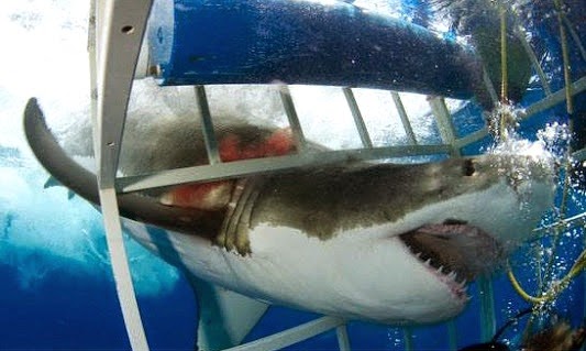 Model Bit By Shark In Cage