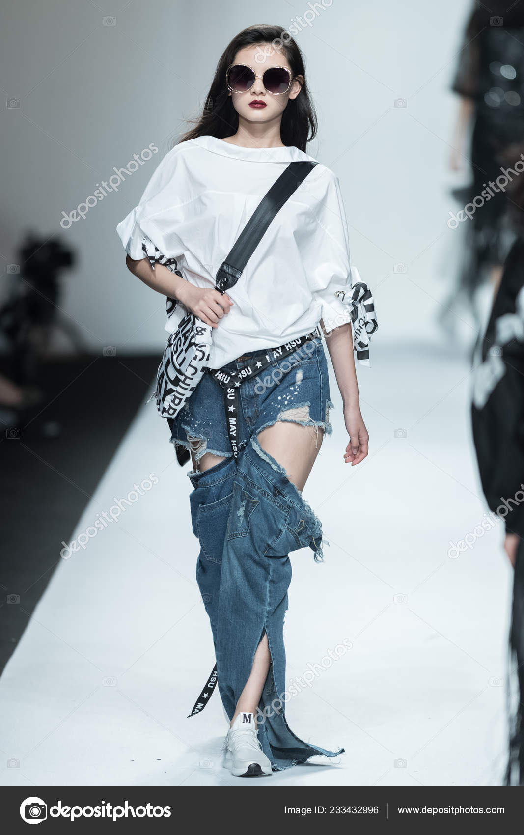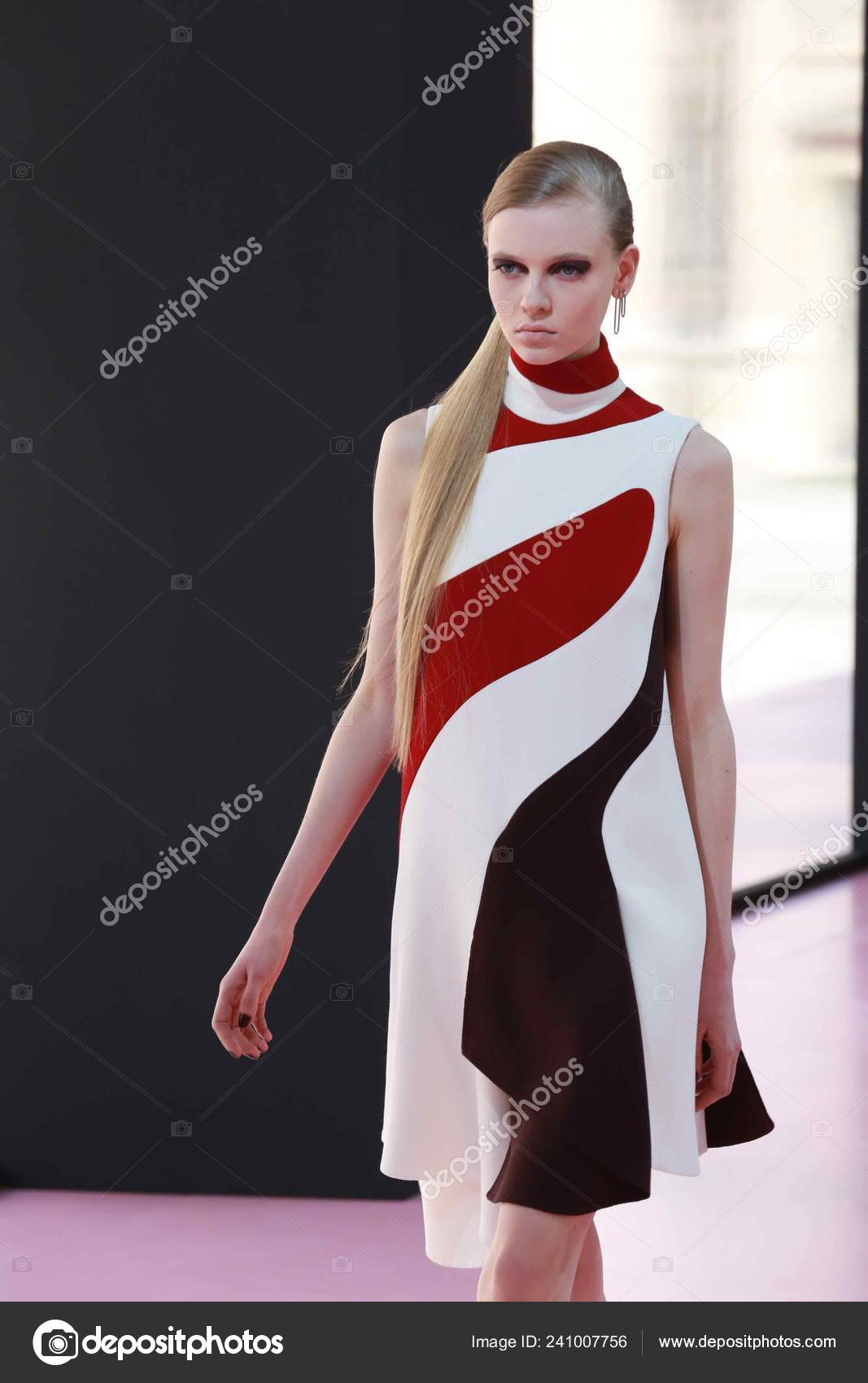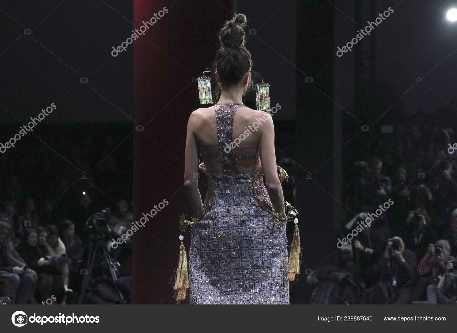 На презентации модель сначала демонстрирует свои ягодицы в откровенной позе, а затем самостоятельно поднимается и идет в сторону камеры .
