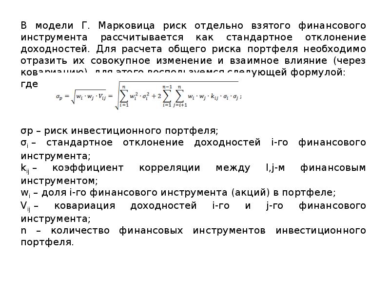 Модель портфеля марковица