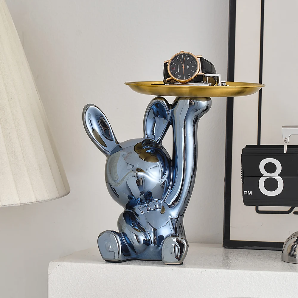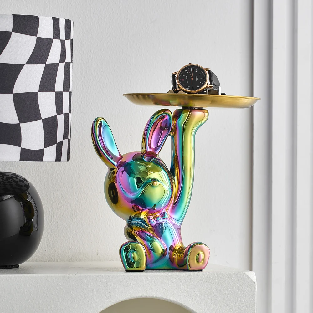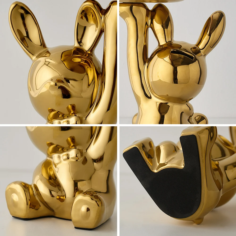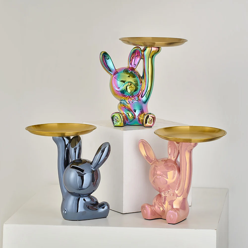 Modern Crafts Creative Rabbit Figurines Electroplated Ceramics Miniatures Candy Storage Tray Living Room Decoration Decor Gifts - Купить с бесплатной доставкой