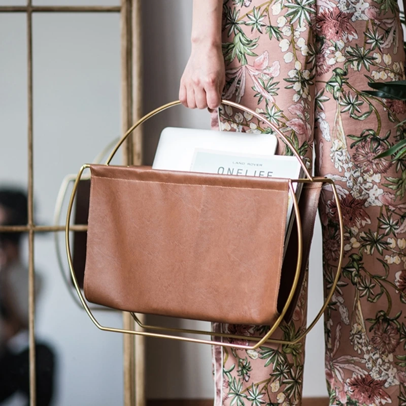 Modern Magazine Stand Standing Rack PU Leather Magazine Organizer with Metal Frame Newspaper Storage Desktop File Holder - Купить с бесплатной доставкой