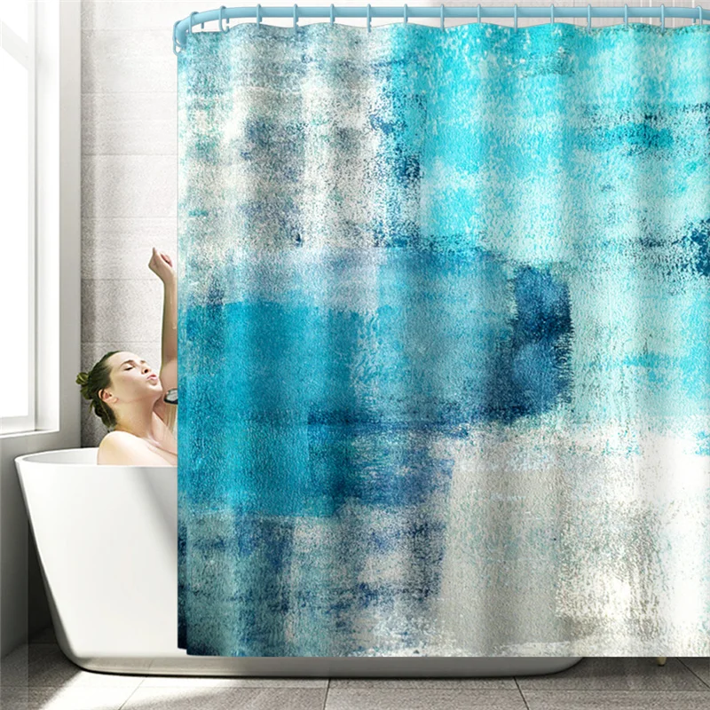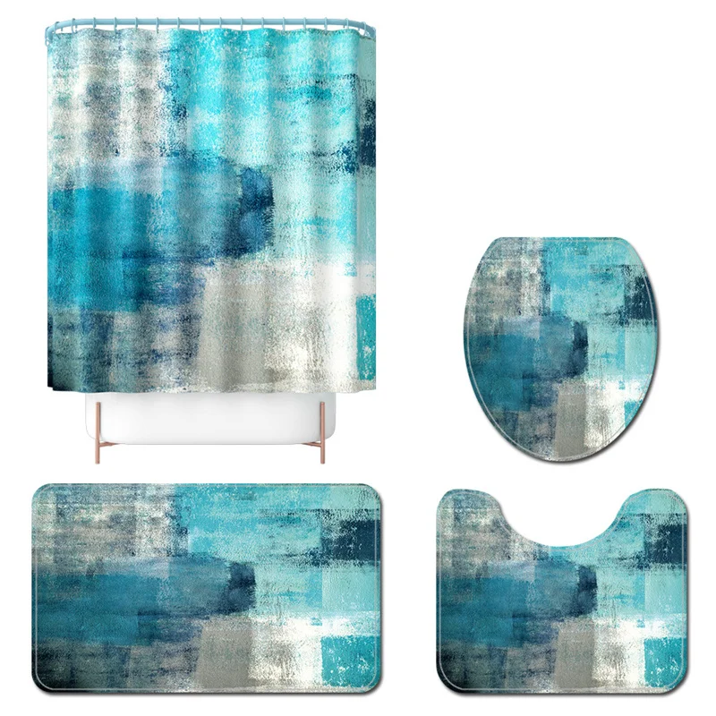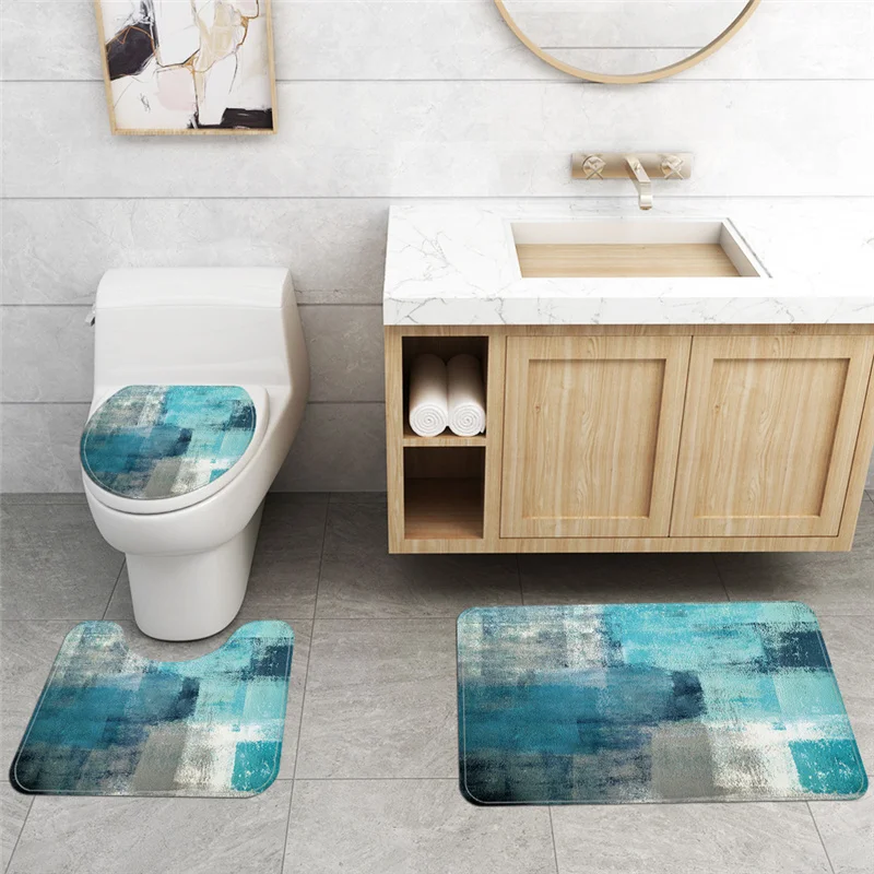 «Modern Minimalist Blue Abstract Print Home Decor Bathroom Toilet Cover Sets Waterproof Shower Curtain Mats Carpet Rugs Suits» по лучшей цене на рынке! Всего за 15$ (1425рублей)