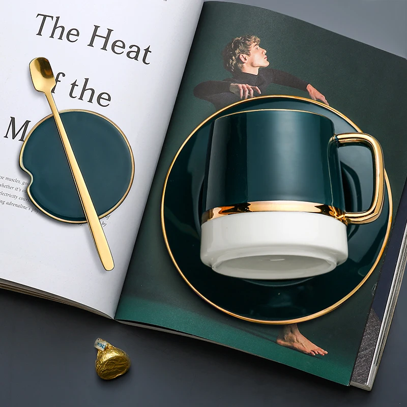 Modern Simple Ceramic Saucer Spoon Set Gold Rim Metal Tea Cup Set Vintage Reusable Cafe Drinkware Coffee Cup Set - Купить с бесплатной доставкой