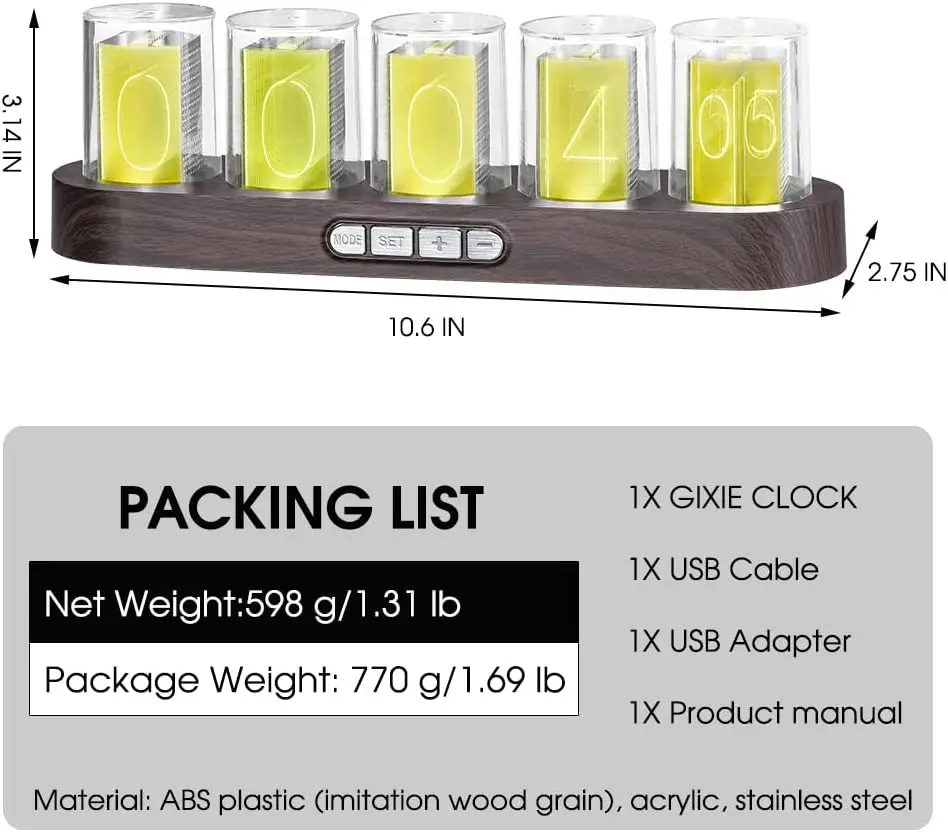 sygXYPeadHere you can buy Modern Tube Nixie Clock Creative Design Digital Table Desk Clock Decor Home Decorations Retro Exquisite Glow Nixie Tube Clock with free delivery to your post office.