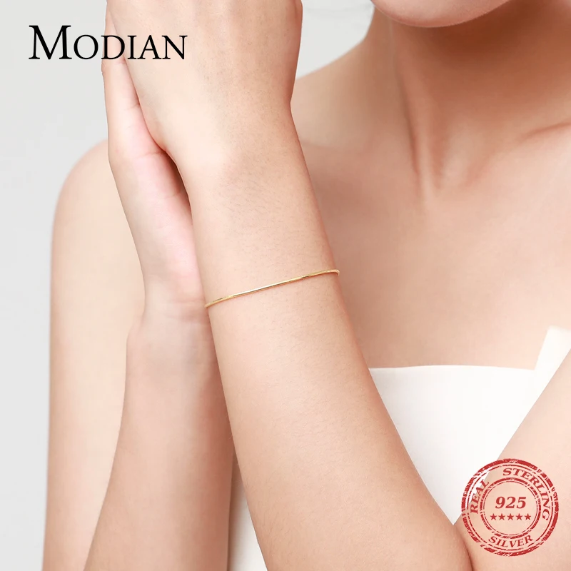«Modian Solid 925 Sterling Silver Simple Charm Snake Chain Bracelet Trendy Gold Color Bracelets For Women Party Fine Jewelry Gift» по лучшей цене на рынке! Всего за 9$ (855рублей)