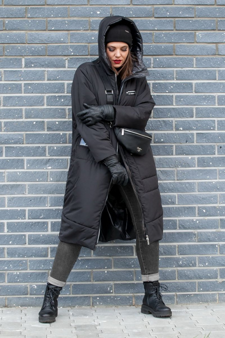 Черный Пуховик Пальто