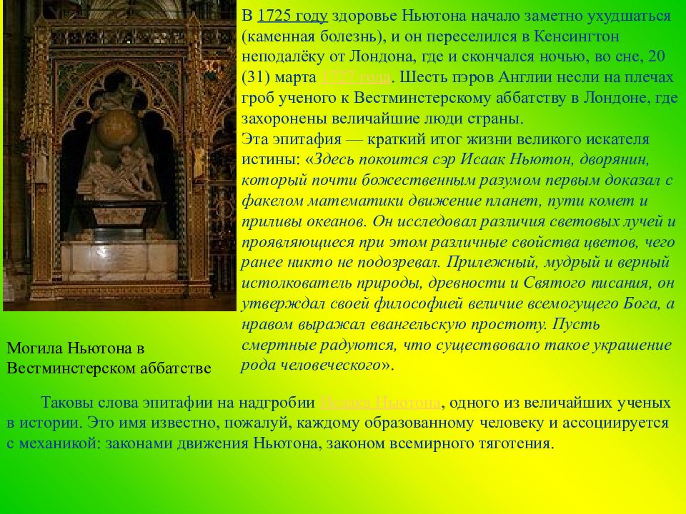Могила Ньютона Фото