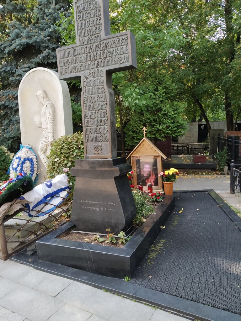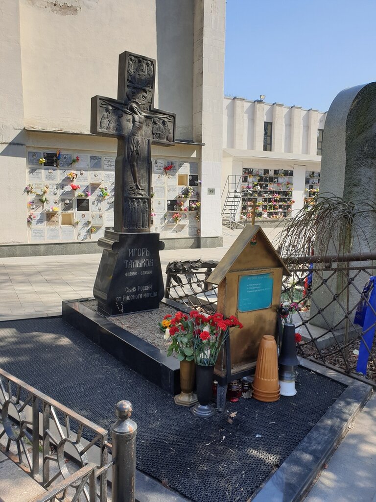 Могила: Могила Игоря Талькова находится в Москве на Ваганьковском кладбище .: Проезд: м . Улица 1905 года (1-й вагон из центра), далее 7 мин пешком . Цветы можно купить непосредственно у входа по относительно низким ценам .