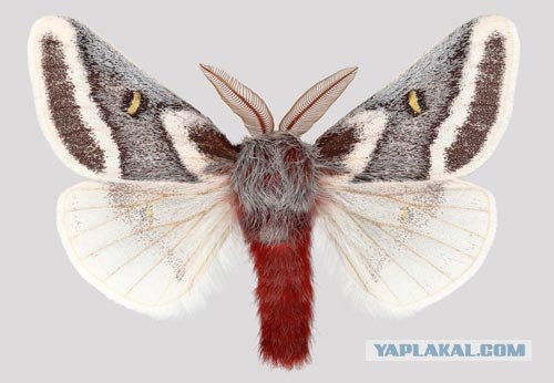 При этом, сама бабочка — очень мохнатая, кирпичного цвета . Это мохнатое чудо — очень редкая личинка . А все потому, что люди массово вылавливали и их, и бабочек на продажу .
