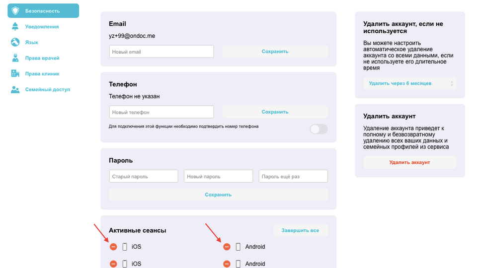 Мои действия удалить