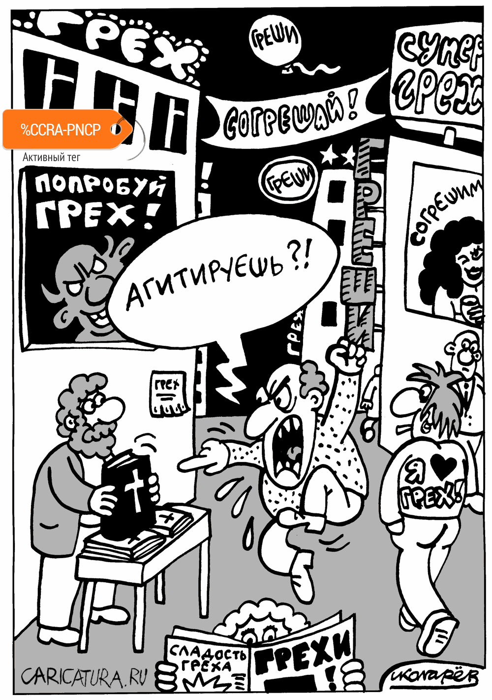 Вся эта ситуация напомнила одну картинку (ниже): грех проповедуется в мире на каждом шагу, а средство от него замалчивается, осуждается. Видимо действительно грех боится этого лекарства, раз так его ненавидит.