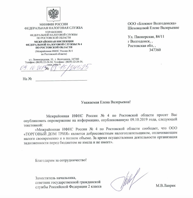 Мои налоги письмо