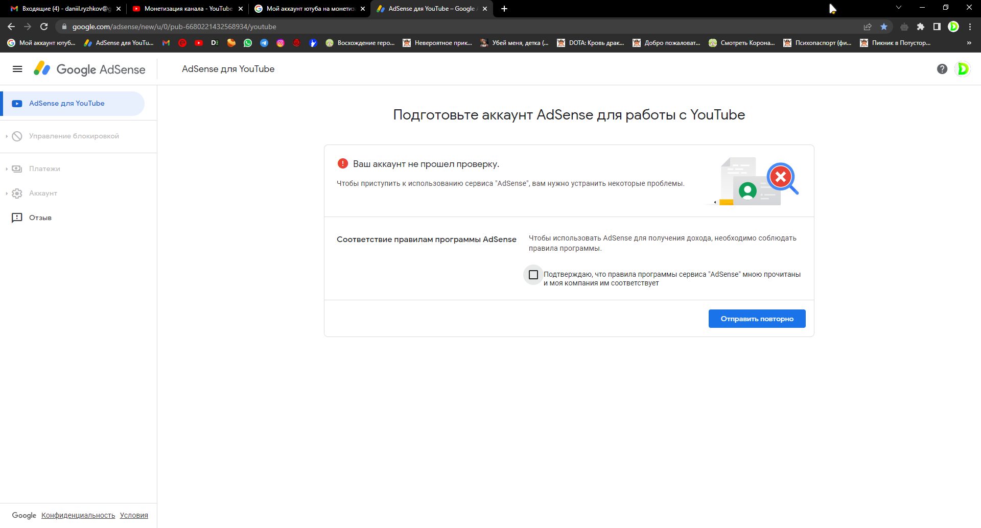 Мой аккаунт в youtube