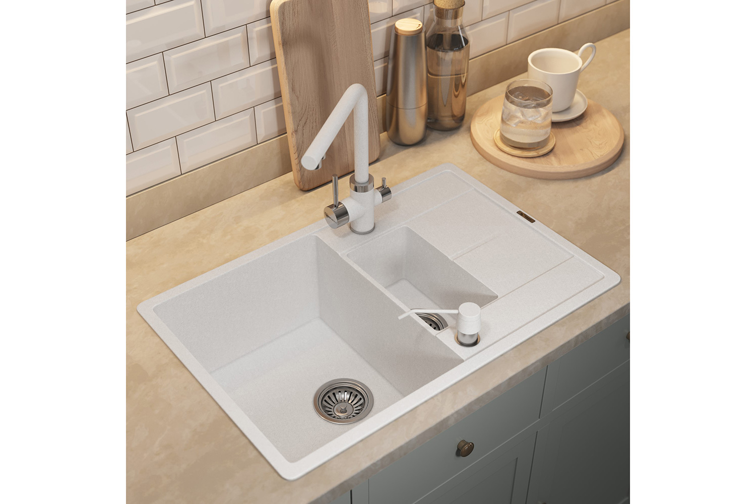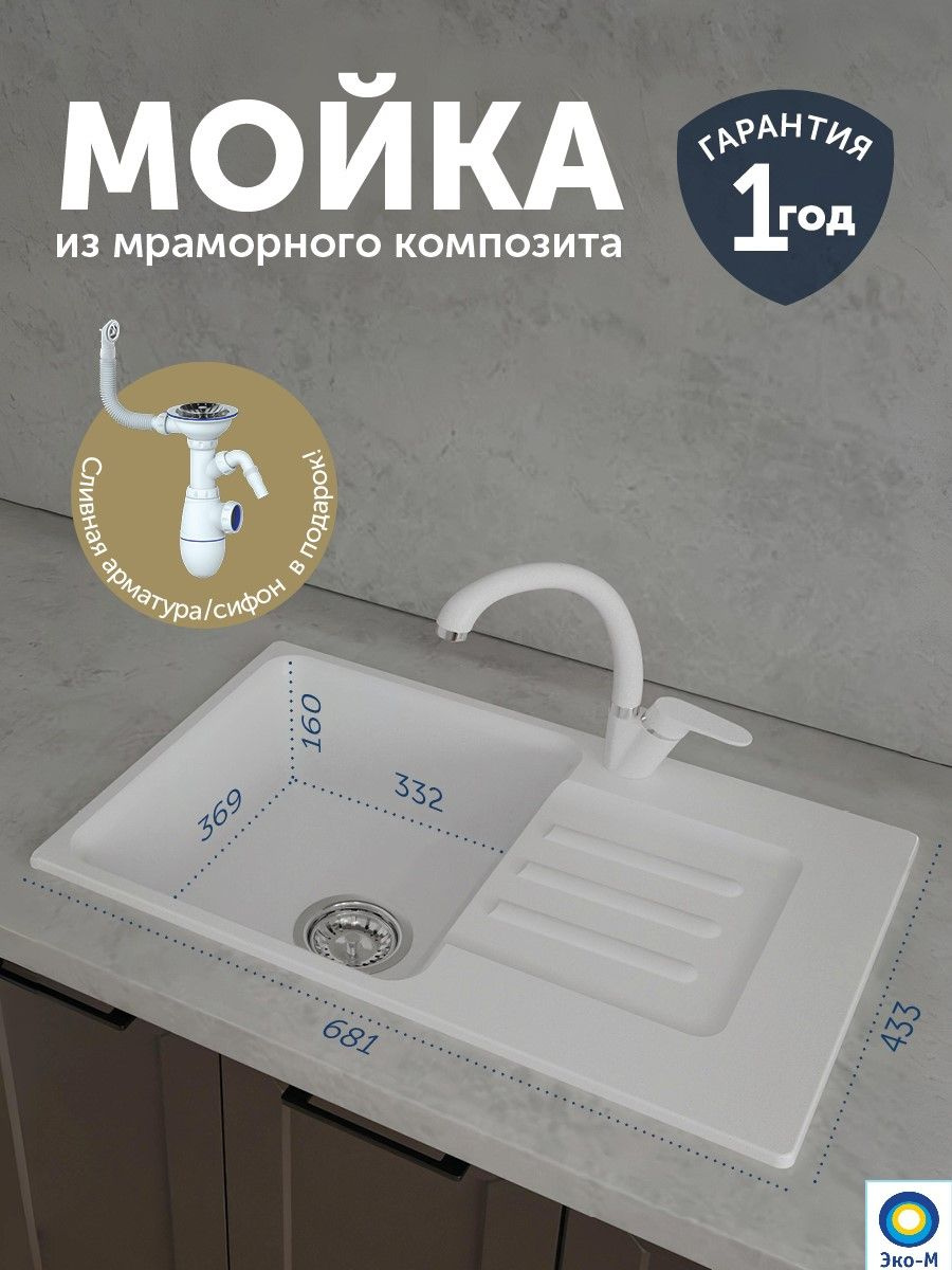 Мойка белая с крылом