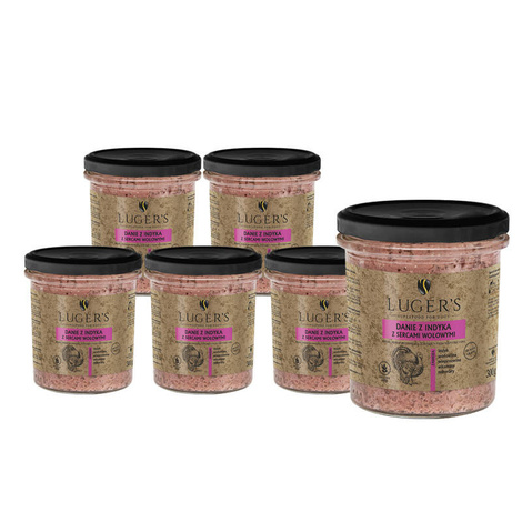 Apetyczna mokra karma bogata w serca indyka . Pokarm z wysoką wartością odżywczą przeznaczony dla szczeniąt średnich i dużych ras . Dolina Noteci Premium Junior Mokra Karma z sercami indyka 400g
