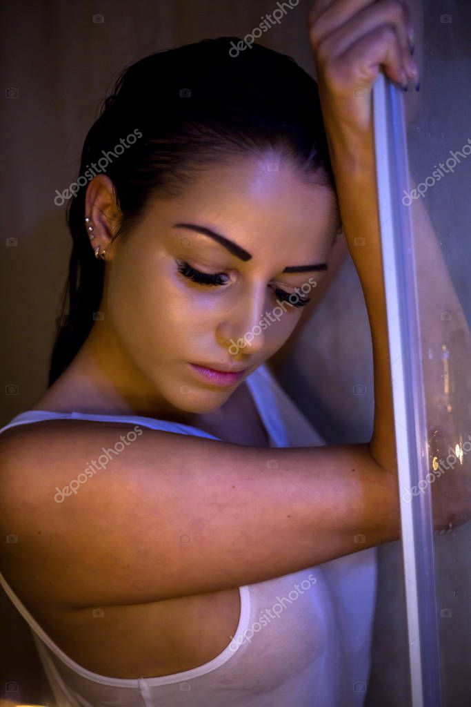 Мокрая брюнетка