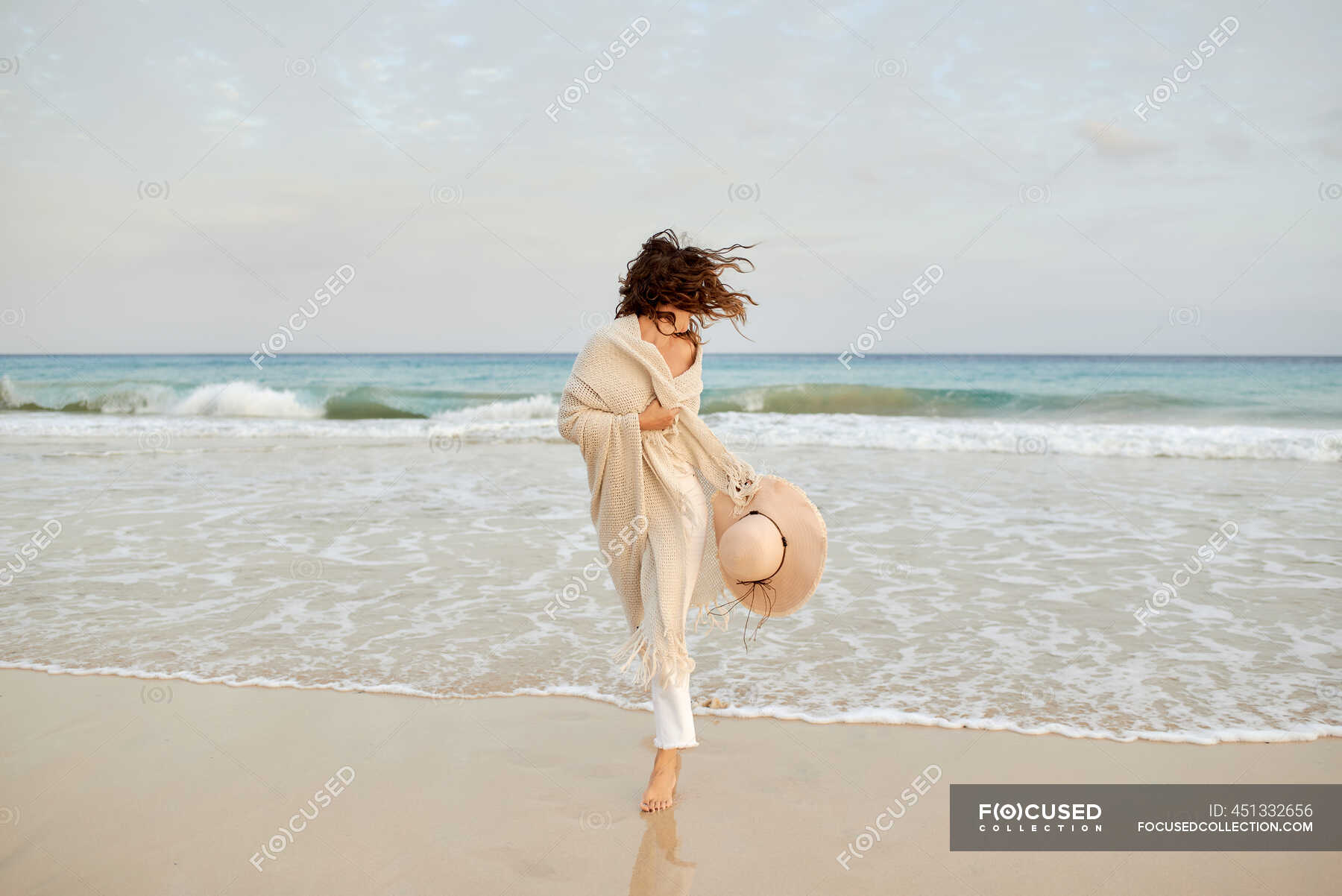 Мокрая девка у скалы на пляже