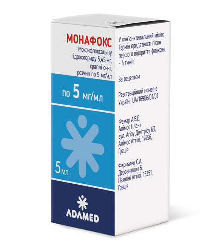 Состав на 1 мл: Действующее вещество: моксифлоксацина гидрохлорид — 1,75 мг (в пересчете на моксифлоксацин — 1,60 мг); Вспомогательные вещества: натрия хлорид, натрия гидроксида раствор 1 М до рН 4,1-4,6, хлористоводородной кислоты раствор 1 М до pH 4,1-4,6, вода для инъекций . . .
