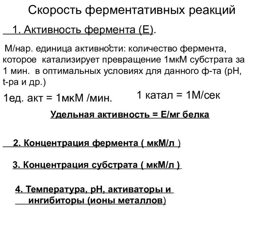Молекулярная активность фермента