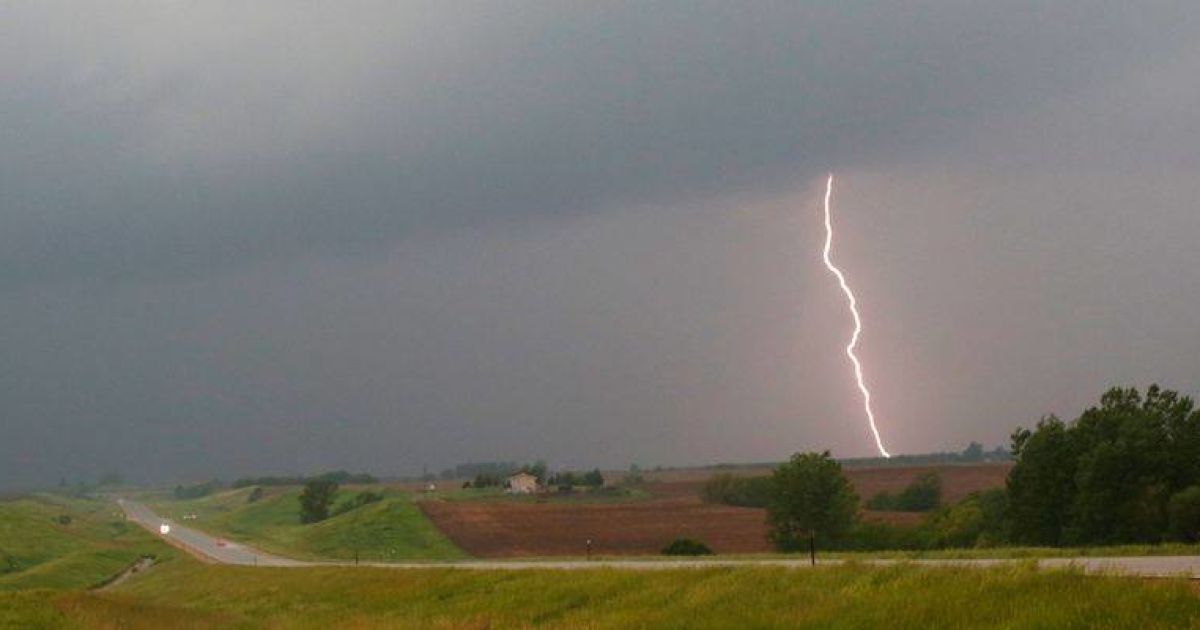 Молния ударила в поле