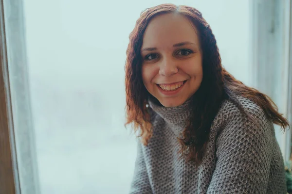 Красивая молодая девушка в повседневной одежде, глядя на . . .
