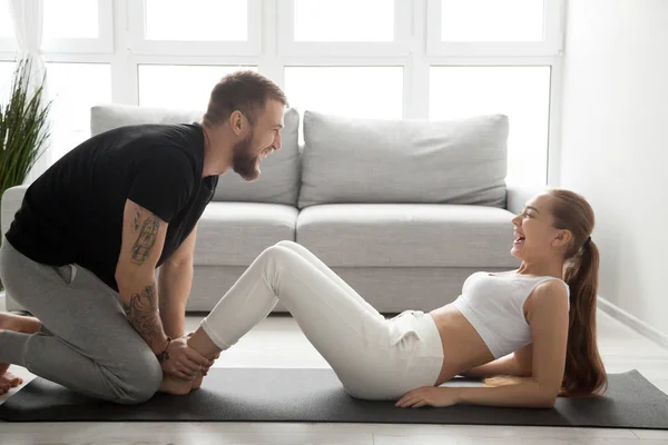 Молодая Парочка Изучает Дома Новую Позу