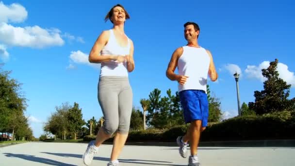 Молодая шатенка в солнцезащитных очках работает на открытом воздухе и слушает музы - Стоковый видеоматериал Активный образ жизни роялти-фри . Описание .