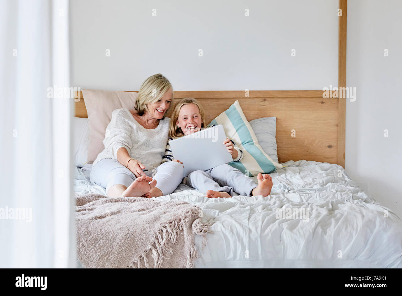 Молодая бабушка в постели