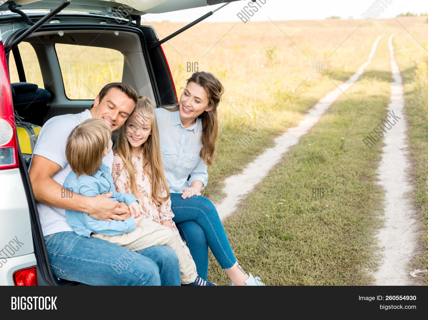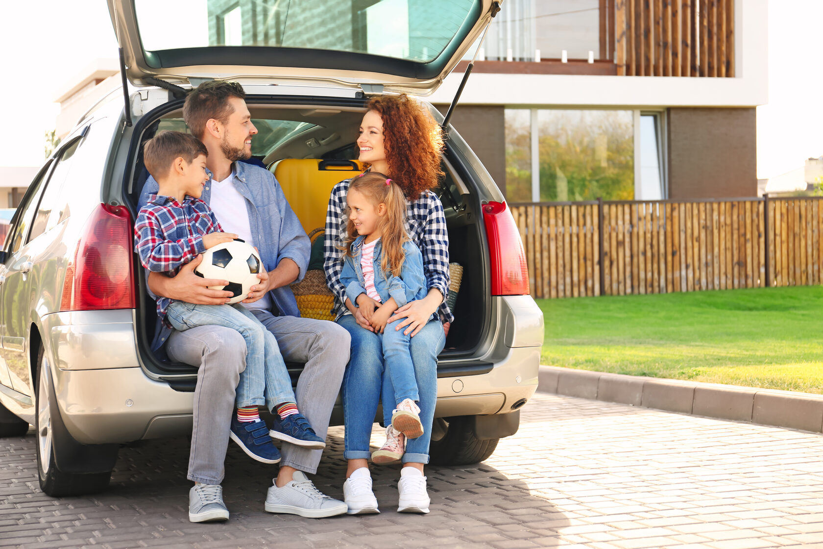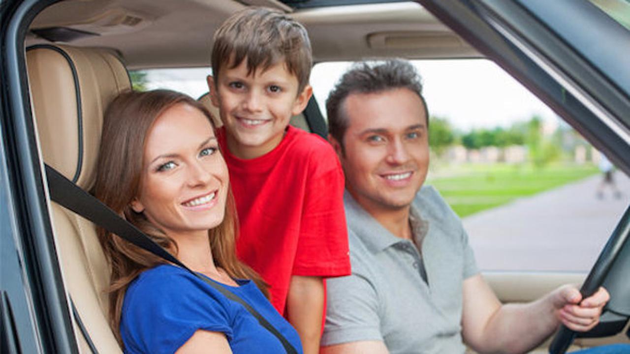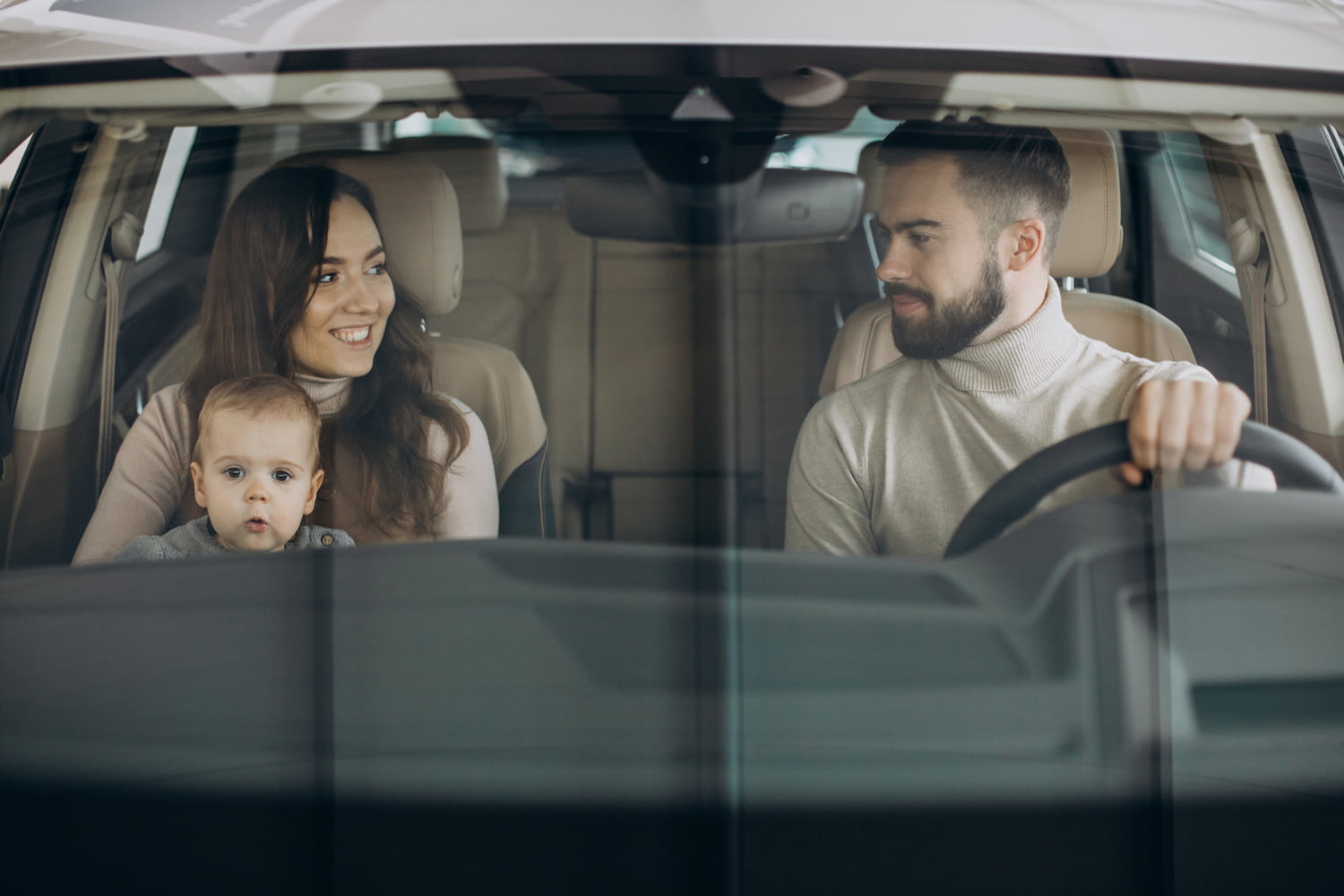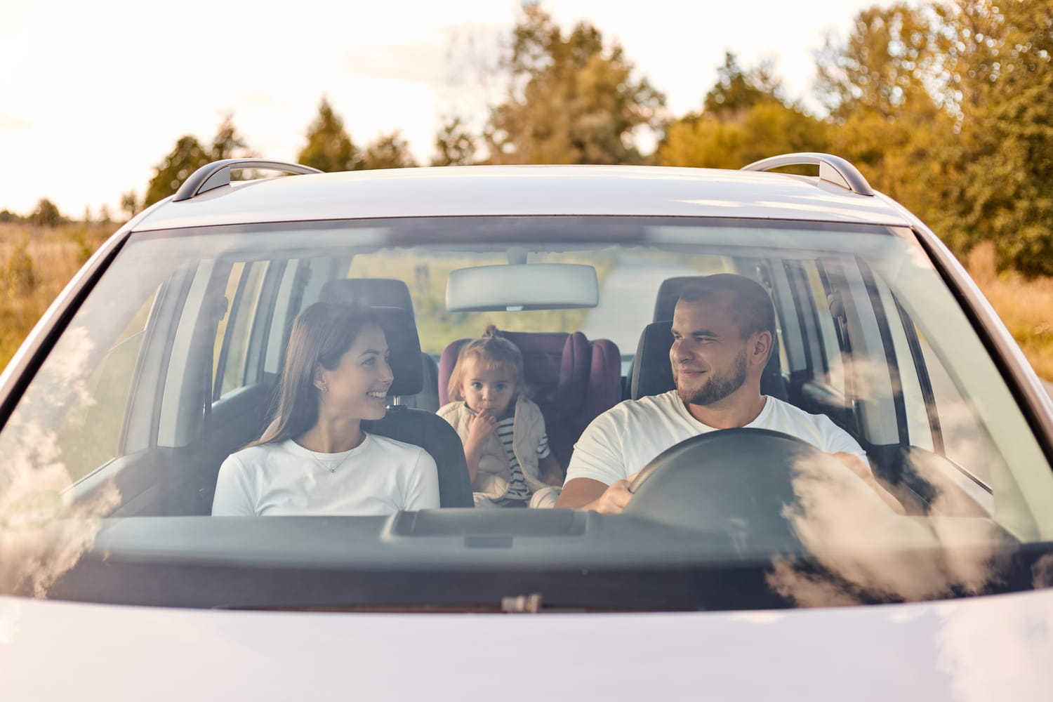 Молодая семья в машине
