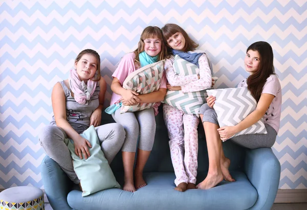 Молодежь развлекается на пижамной вечеринке