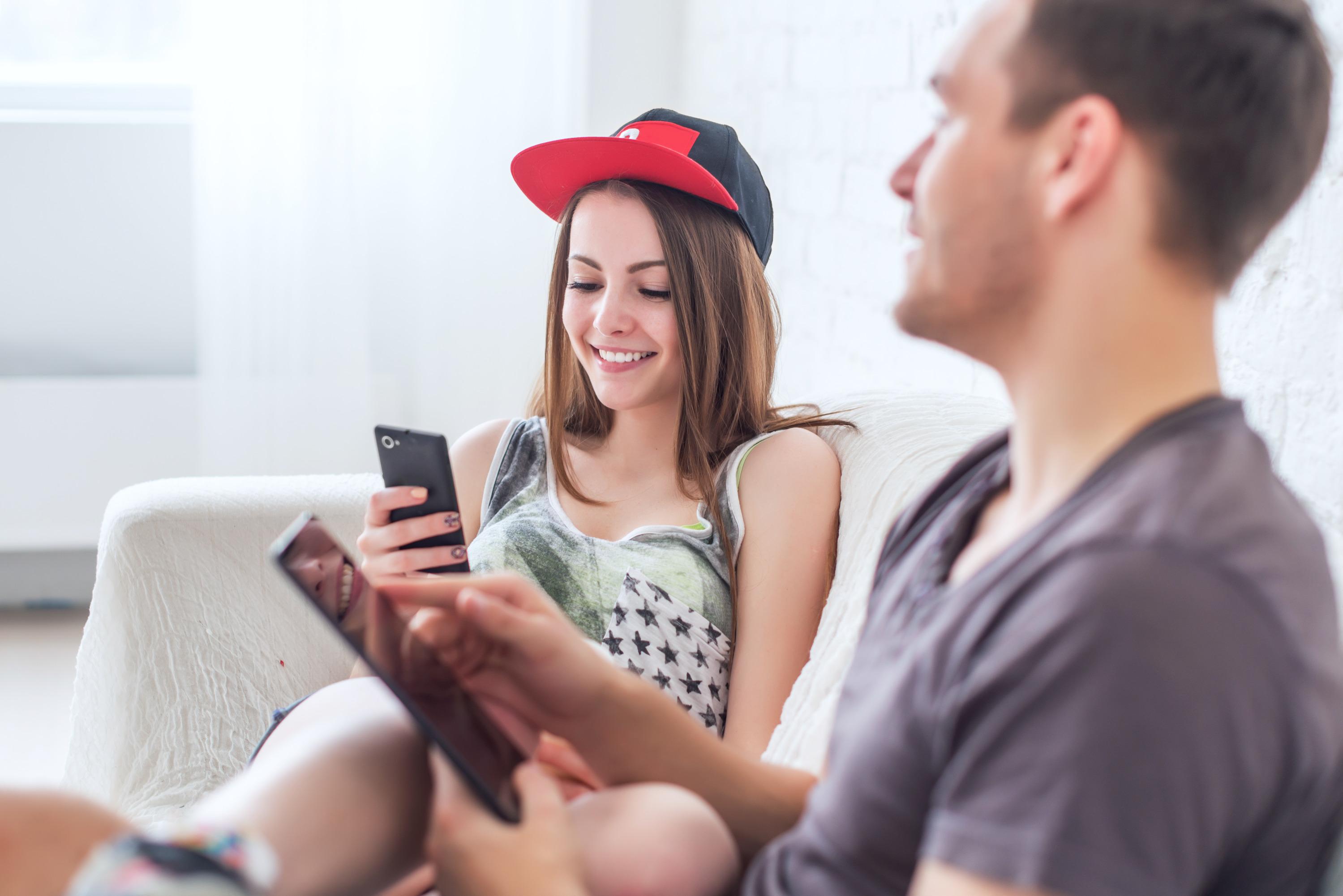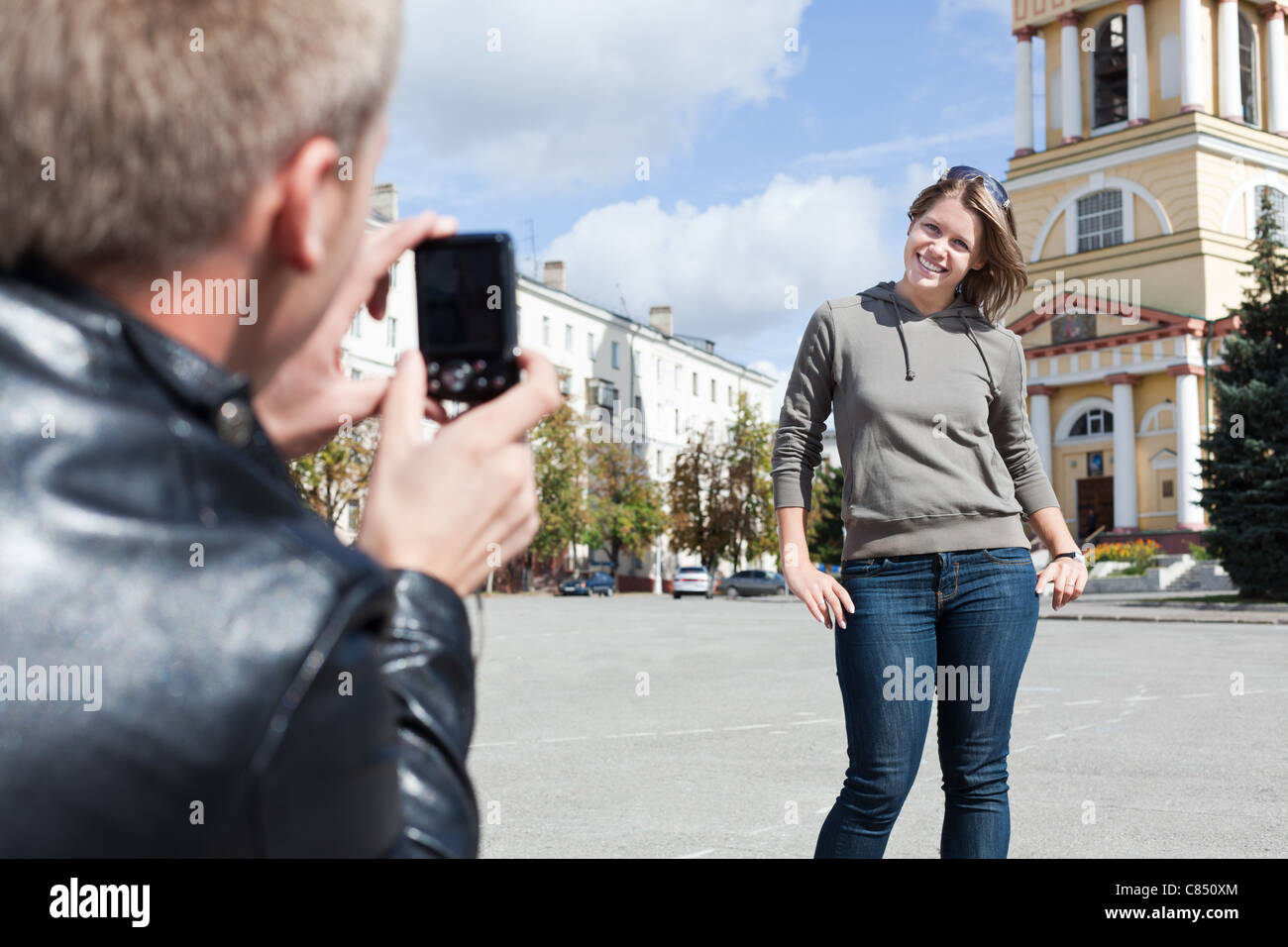 Молодые люди снимают девушками