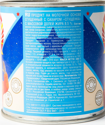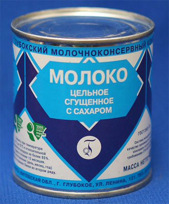 Сгущённое молоко, выпускавшееся в СССР для розничной продажи, фасовалось в жестяные консервные банки № 7 вместимостью 325 мл с массой продукта 400 г с бело-сине-голубыми бумажными этикетками .