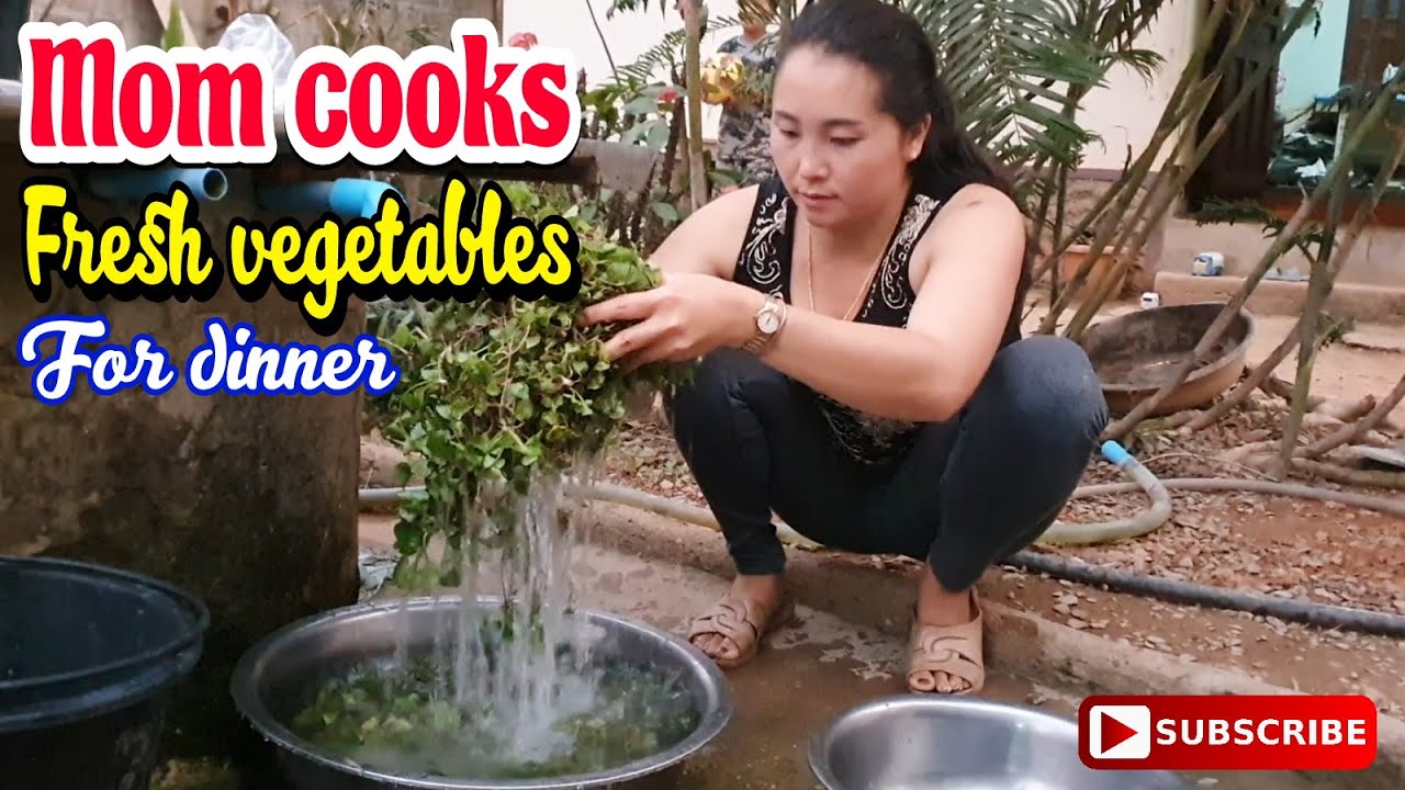 Mom cooks vegetables to cook with children - YouTube