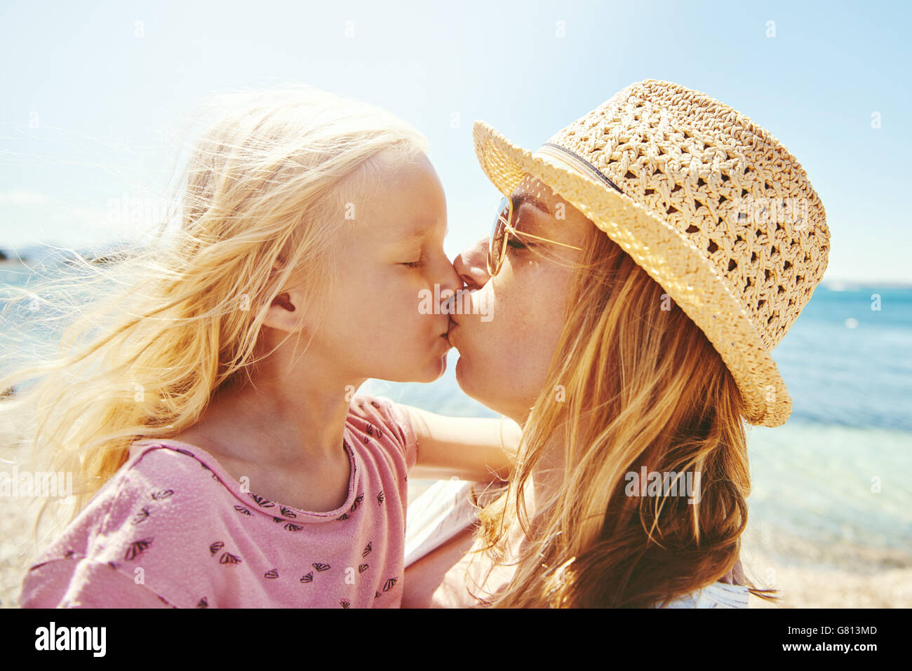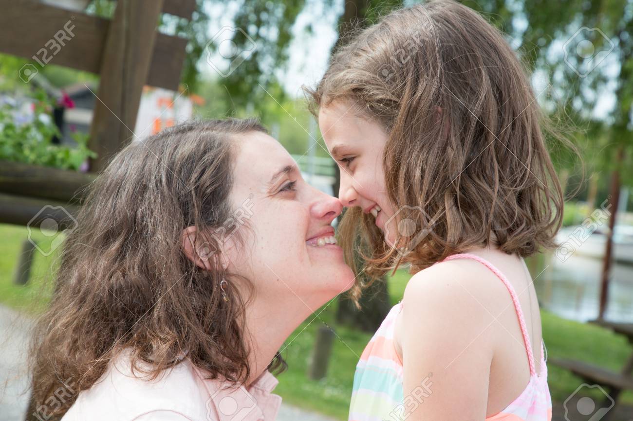 Mom Daughter Kissing
