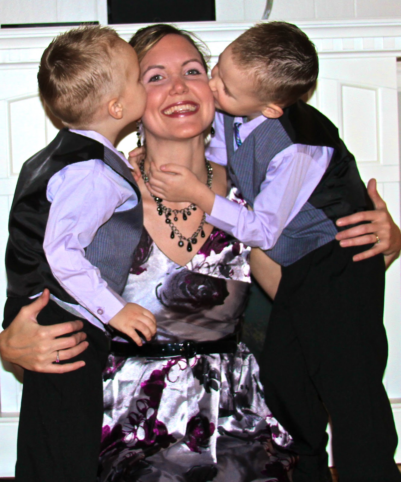 This photo is another example of an inappropriate mother/son picture since they're both wearing headgear (along with the kid's sister).