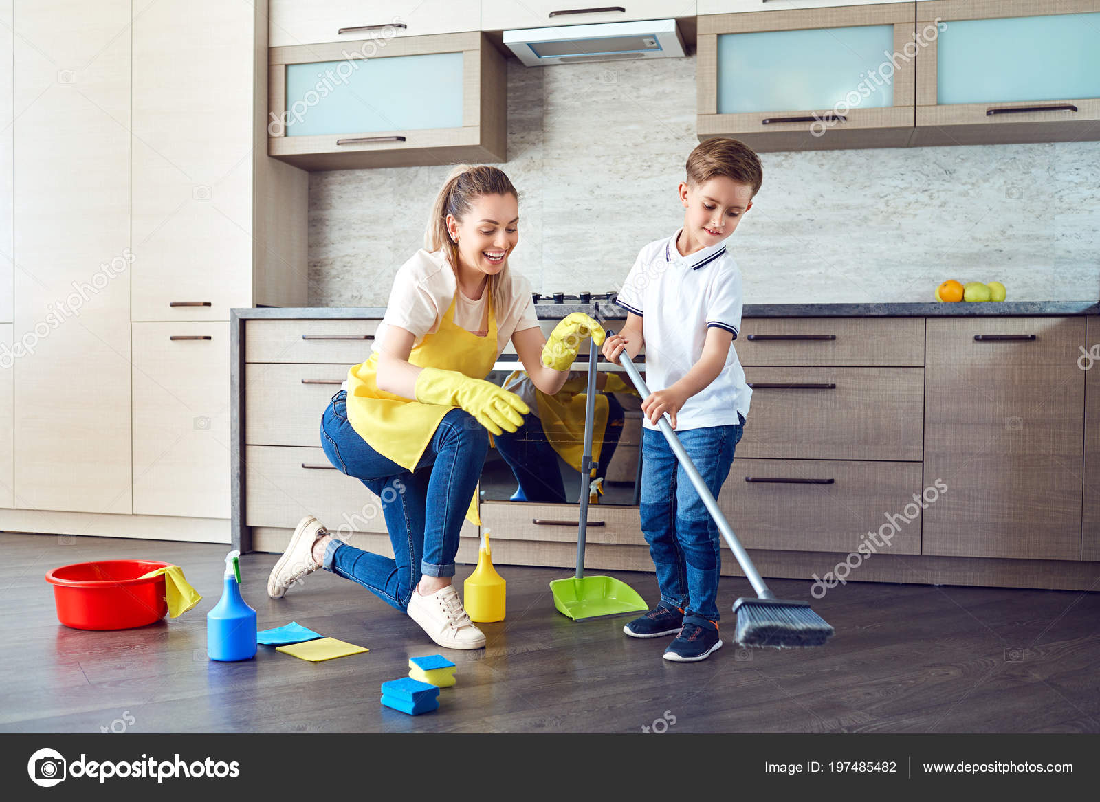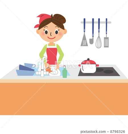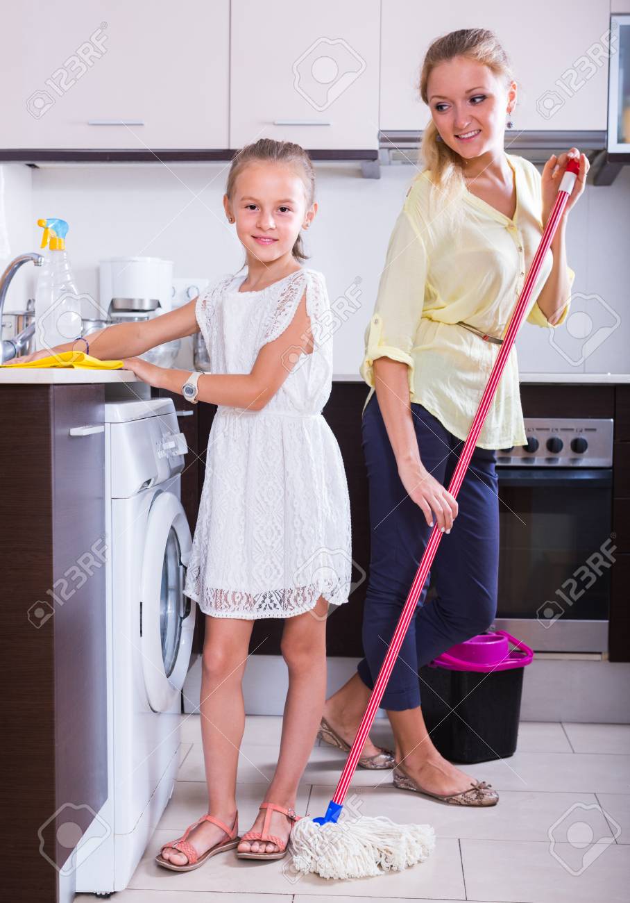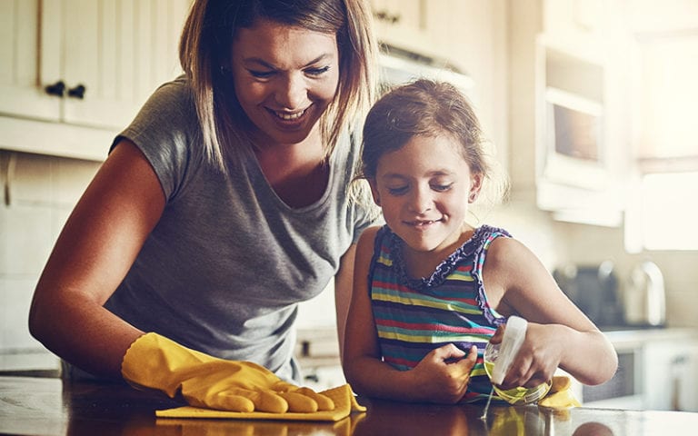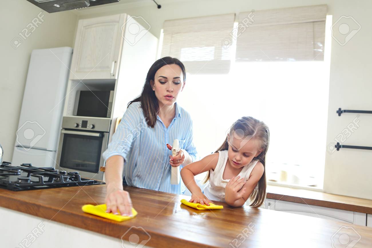 Mom cleaning kitchen