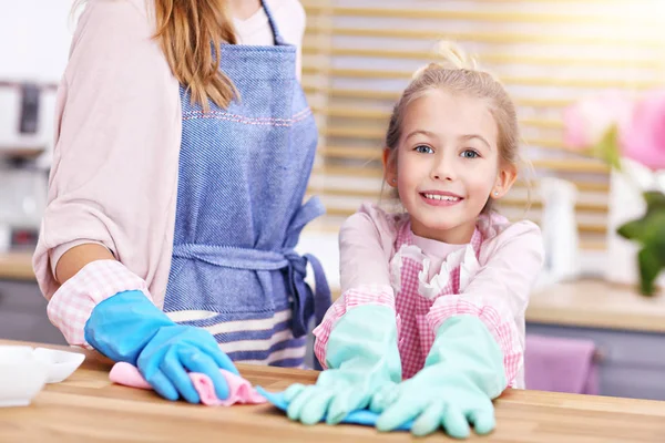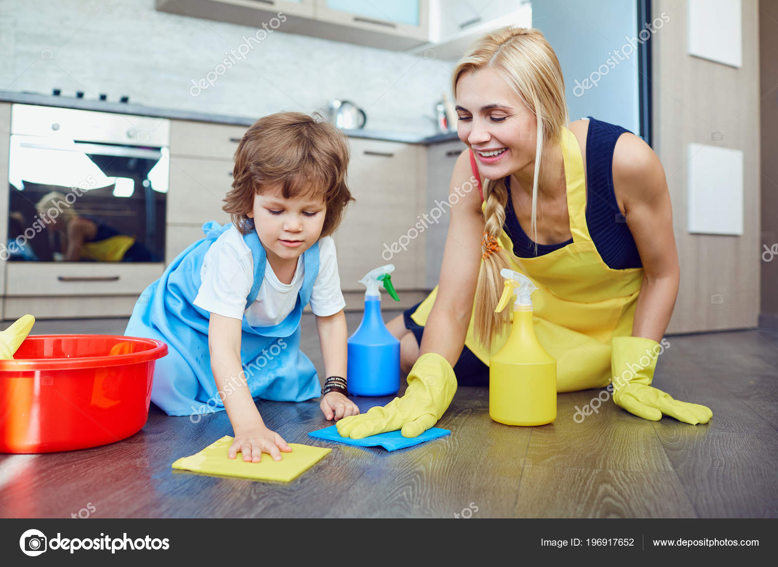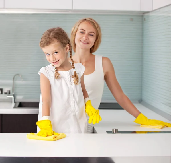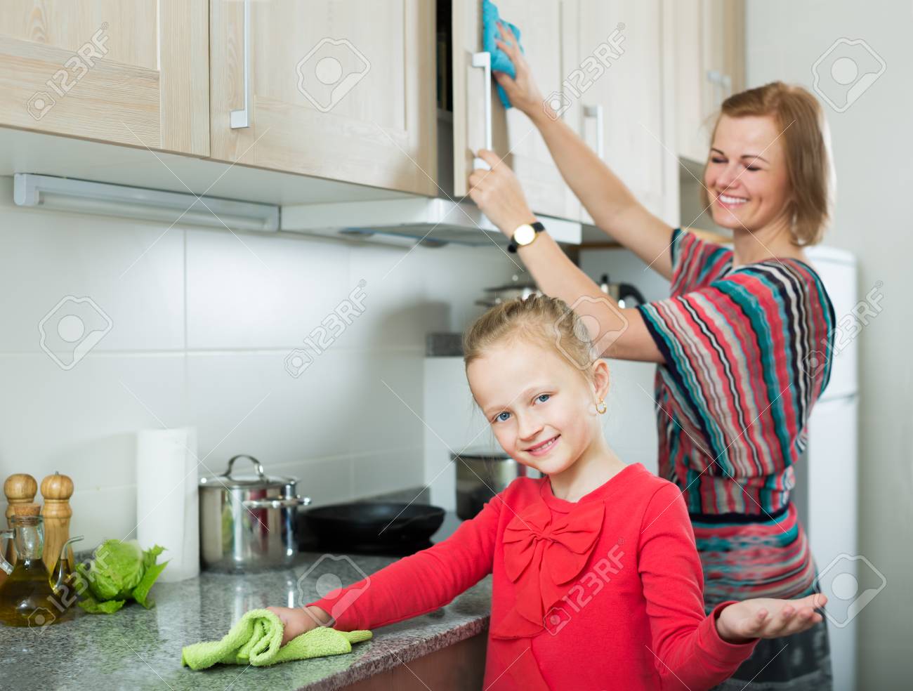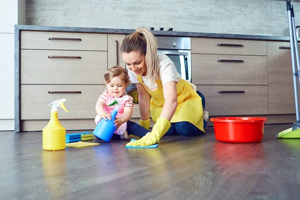 Mom cleaning kitchen