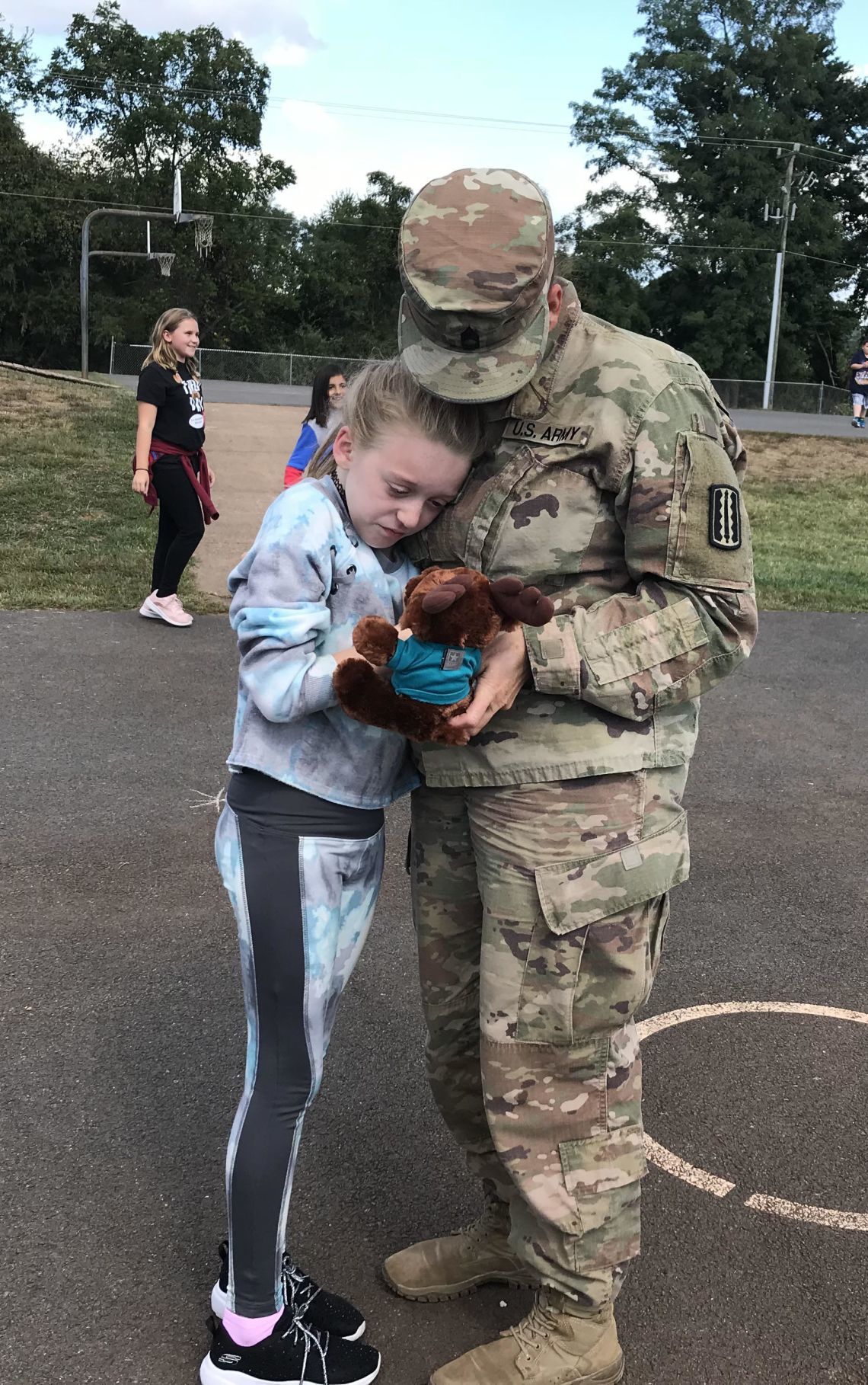 Kris Belanger, a Colonel in the U .S Army, surprised her daughter at Oakview Elementary after returning from being in Iraq for one year .