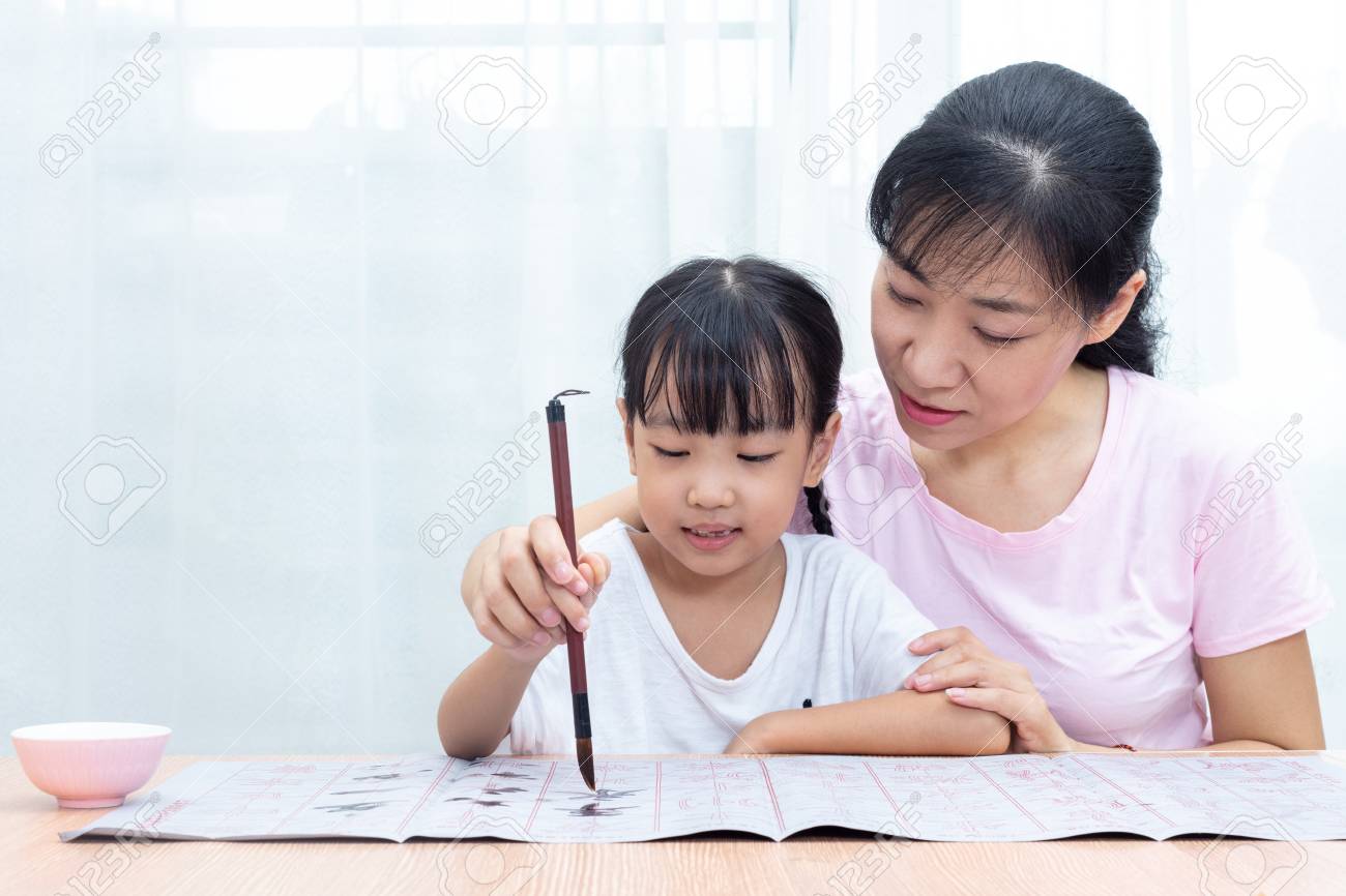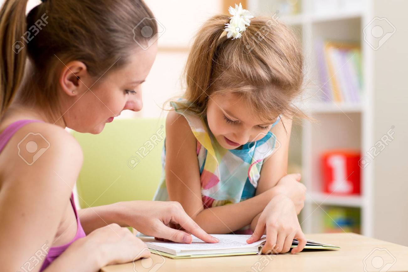 Mom teaching daughter